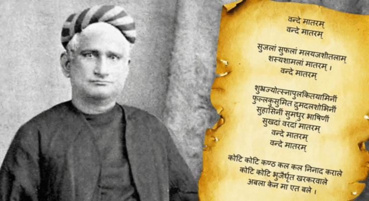 ‘वंदे मातरम’ – जिसका अर्थ है- माँ मैं तुम्हें नमन करता हैं। साहित्य सम्राट बंकिमचंद्र चटर्जी ने इस गीत के माध्यम से भारत माता के दिव्य सार को अभिव्यक्त किया था। तब से, इस गीत के पहले दो शब्द ‘वंदे मातरम’ मन्त्र की तरह गाये जाते हैं।’वंदे मातरम्’ गीत सर्वप्रथम 1876 में ‘बंग दर्शन’ पत्रिका में प्रकाशित ढुआ था। 1882 में इस गीत को बंकिमचंद्र के उपन्यास आनंदमठ में शामिल किया गया। अपने प्रकाशन के बाद से, ‘वंदे मातरम्’ देशभक्त भारतीयों की आत्मा का मंत्र बन गया। स्वयं ऋषि बंकिमचंद्र ने वंदे मातरम गीत के बारे में कहा था- ‘अभी आपको इस गीत का अर्थ समझ में नहीं आएगा, लेकिन 25 या 30 वर्षों के बाद, आप देखेंगे कि पूरा देश इससे भावविभोर हो गया है। वंदे मातरम् पूरे देश में देशभक्ति की अग्नि प्रज्वलित करेगा।’ 28 अक्टूबर, 1916 को रवींद्रनाथ टैगोर ने अपने पुत्र रथींद्रनाथ को लिखे एक पत्र में लिबा था- ‘हमारा वंदे मातरम् मंत्र बांग्लादेश की पूजा का मंत्र नहीं है- यह धरती माता की पूजा है- यदि हम आज उस पूजा गीत का जाप करें, तो आने वाले युग में, यह मंत्र एक-एक करके सभी देशों में सुनाई देगा।’ क्रांतिकारी हेमचंद्र गुहा के शब्दों में’उस समय कोई भी वंदे मातरम गीत में निहित शक्ति और भावना को नहीं समझ सका।’1896 में राष्ट्रीय कांग्रेस के अधिवेशन में रबींद्रनाथ टैगोर ने स्वयं अपनी धुन में ‘वंदे मातरम’ गाया था। 1905 में, बंगाल विभाजन आंदोलन के अशांत दिनों में, कई अन्य गीतों के साथ ‘वंदे मातरम’ को भी हृदय-मंत्र के रूप में गाया गया था। 7 अगस्त, 1905 को बंगाल बिभाजन के विरोध में कोलकाता के टाउन हॉल में आयोजित बहिष्कार सभा में, रवींद्रनाथ टैगोर ने ओजस्वी स्वर में ‘वंदे मातरम’ गीत गाया था।1896 से 1922 तक, भारतीय राष्ट्रीय कांग्रेस के सभी अधिवेशनों में वंदे मातरम गीत गाया जाता था। लेकिन 1922 के कांकिनारा कांग्रेस अधिवेशन में लय टूट गई। मौलाना मुहम्मद अली वहां अध्यक्ष थे। जब महान गायक विष्णु दिगंबर पलुस्कर ने ‘वंदे मातरम’ गीत गाना शुरू किया, तो सत्र अध्यक्ष ने स्वयं आपत्ति जताई। लेकिन दृढ पलुस्कर ने उस आपत्ति को नजरअंदाज कर दिया और पूरा गीत गाया। मुहम्मद अली की आपत्ति का कारण यह था कि इस गीत में हिंद धार्मिक भावना बहुत अधिक थी। इसलिए, मुसलमानों के लिए यह गीत गाना संभव नहीं था। कांग्रेस ने मौलाना मुहम्मद अली की राय को पूरे मुस्लिम समुदाय की राय मानना शुरू कर दिया। 1937 में, कांग्रेस कार्य समिति की बैठक में वंदे मातरम गीत के ‘आपत्तिजनक हिस्से’ को हटा दिया गया था। उस दिन, रामानंद चट्टोपाध्याय ने चेतावनी दी- ‘यदि यह गीत विभाजित होता है, तो देश भी विभाजित हो जाएगा’। लेकिन विभाजित भारत की आजादी के बाद भी, गीत – वंदे मातरम – के महत्व को कम करने का प्रयास जा